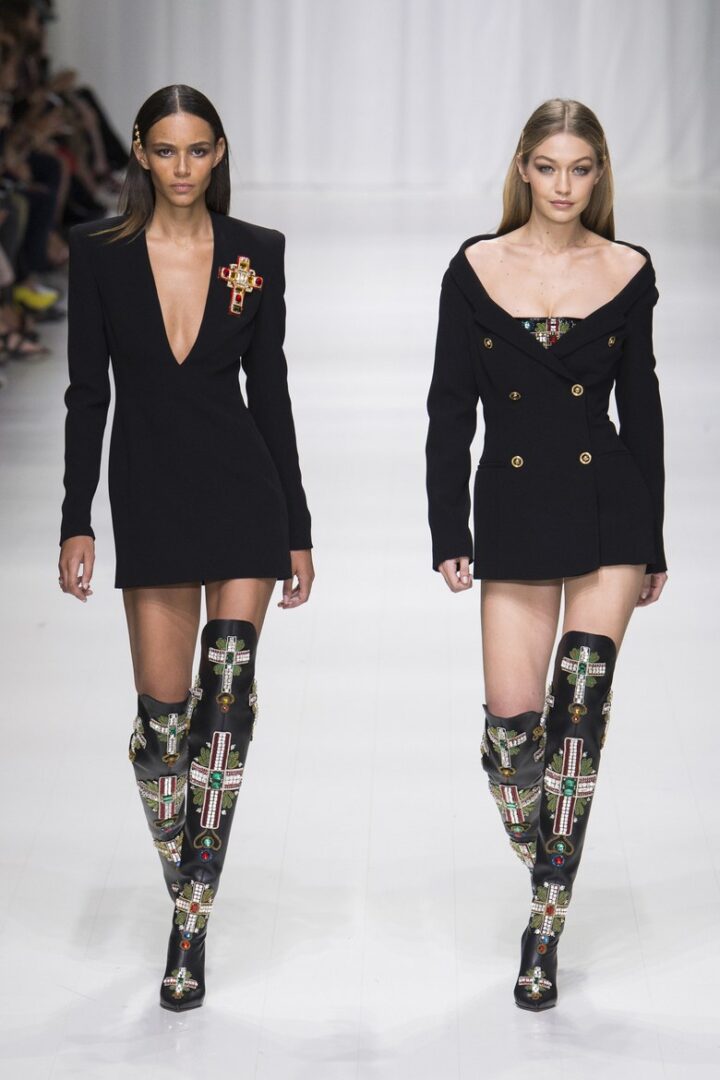 The show paid homage to Versace’s greatest designs, in addition to the Spring 2018 collection. The supermodels were all decked in variation of the gold chainmail dress. And the audience exploded in applause!