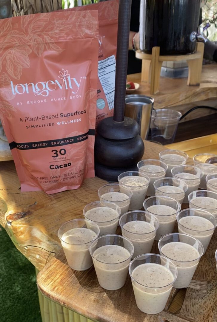 We got to sample a variety of Longevity-based recipes (smoothies, acai bowls, stuffed dates) which were so good. And the plant-based, wheat-free, gluten-free, and dairy-free Longevity blends contain therapeutic levels of chia seed, flaxseed, green tea, probiotics, goji, and more in a single scoop serving. And it comes in two flavors-Cafe Mocha and Cacao.