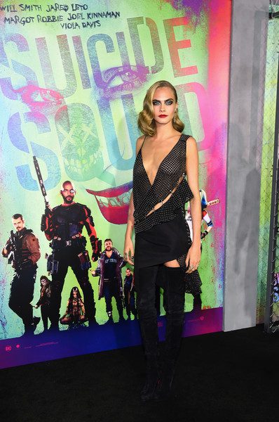 Cara Delevingne was all about giving us a sultry, modern look at the Suicide Squad premiere this week. Her Anthony Vaccarello designed number was asymmetrical, cutout and adorned with silver hardware. She accentuated her ensemble with H.Stern diamonds, bold makeup and thigh-high Christian Louboutin boots. How is that for sexy? Comment below!