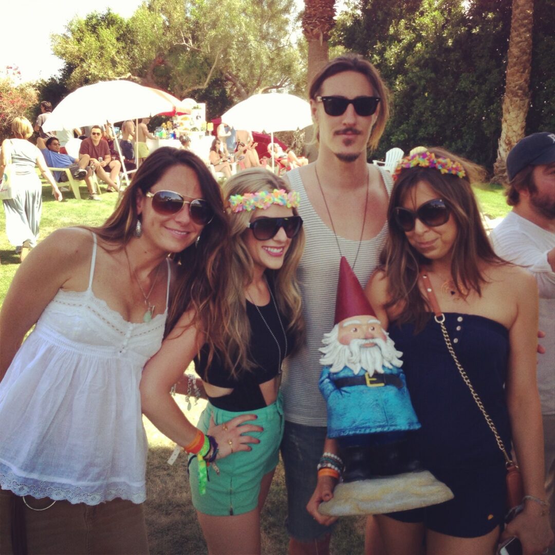 The next day brought about the Bagatelle Beach Mirage party at a private residence in La Quinta. This amazing estate was surrounded by a moat, and the party even had a zip line! The handsome Eric Balfour stopped by and we were all in a pic with the infamous Travelocity Roaming Gnome, who was all over Coachella! In fact, he even zip lined for the cameras!
