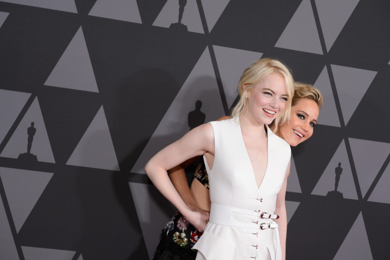 Lawrence also made it a date night with director beau, Darren Aronofsky, who sat with her at her table. Earlier in the evening, JLaw reunited with one of her besties, Emma Stone, on the red carpet. And speaking of Stone, she also met up with her former boyfriend, Andrew Garfield, for some friendly chat during the show. Angelina Jolie, Margot Robbie, and Whoopi Goldberg also joined in for the festivities.