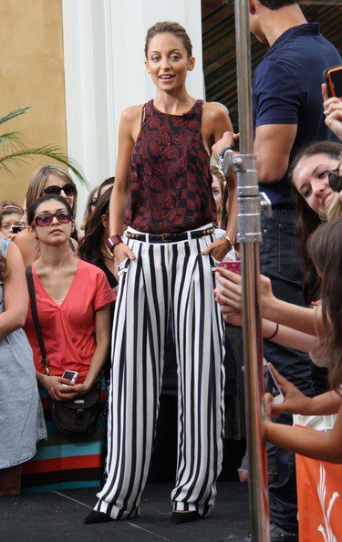 As you know, mixed prints are one of the hottest trends this season. The key to mixing prints is to choose ones that play off each other in some way, or have some element in common such as tone, shapes or pattern to make it look uber-chic. And that is exactly what Nicole Richie did this week in a floral-print blouse and striped wide-leg pants. Why did this look work? Because the geometric black squares in her top complimented the linear stripes on her trousers. And both pieces were comfortably loose, with black woven throughout. Throw in a studded belt, black pointy-toe heels, aviators and a maroon cuff. The result? Effortless-looking style.