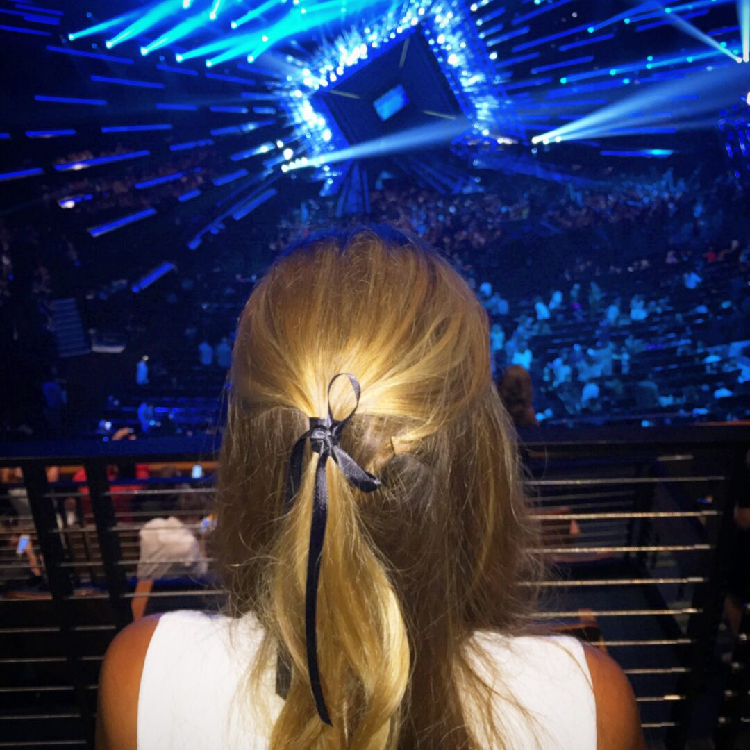 And for my hair, I again threw it back to being a Francophile. I have been obsessed with a loosely tied bow for a while now. It was the perfect opportunity to try it out with my hair half up, in soft waves (not curls). I wanted to keep my hair playful and sweet to balance out the sultriness of my makeup and dress, but still chic. It was a blast to get dolled up for this awards show, since really anything goes! Do you have a favorite moment from this year’s MTV VMAs?