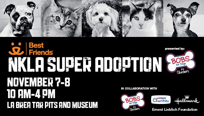 It’s that time of year again. Time for the NKLA Super Pet Adoption Fall Event in Los Angeles! Over 1,000 dogs, cats, puppies and kittens from fifty NKLA partners, city and county shelters, and rescue groups will be up for adoption this weekend (November 7-8) from 10 AM-4PM at the La Brea Tar Pits (5801 Wilshire Blvd, Los Angeles CA 90036). And adoption fees will be as low as $50!