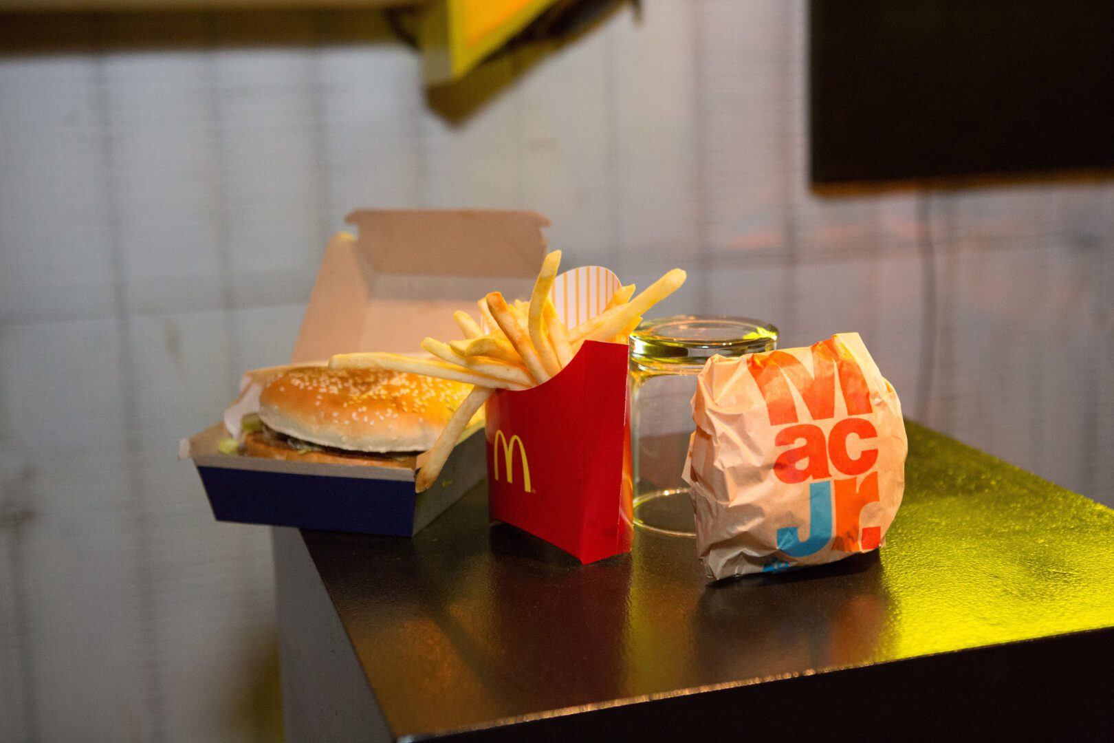 Inside the studio was a chic set up of Big Macs on display behind the bars and dozens and dozens of burgers on the huge chandeliers in the middle of the room! Grand Mac was spelled in huge letters at the back of the room, which was a popular spot for photos. And servers were walking around with trays of big macs and french fries all night long. Happy face!