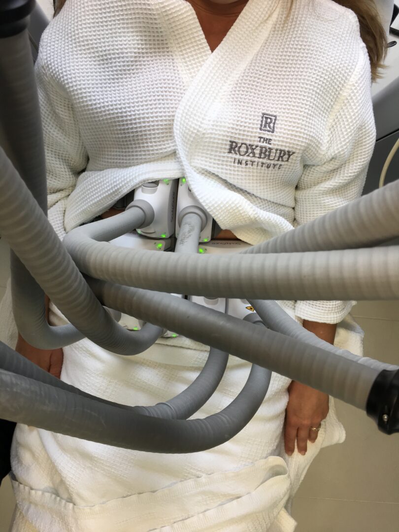 Basically what happened at my appointment was that I was connected to two machines with octopus-like applicators (each machine has four, and now he’s able to treat more areas in one session) that attached to a belt that was fitted around my waist. And then the machine was turned on. The first four minutes were easy, with a cooling burst of air directed onto my belly. But right at that four-minute mark, things started to warm up, fast… When I was on the right on the edge and felt like I couldn’t take it anymore, I would close my eyes and think, “You have to be in unforgiving red carpet gowns next month!” And just then the machine went into the cooling mode and brought me back from the point of no return. Phew! These alternating heating and cooling cycles went on for about 21 minutes (25 total if you count the ramp up stage) until the treatment was over. Then I flipped over onto my stomach where we tackled my flanks (aka love handles). And same as before, the belt and applicators were attached to my lower back and the treatment started. For me, the flank treatment was more tolerable than the tummy. And each patient’s experience is individual. According to Dr. Schwartz, most people report a deep warming sensation. The treatment lasted 25 minutes on the love handles as well, with the same alternating heating and cooling cycles.