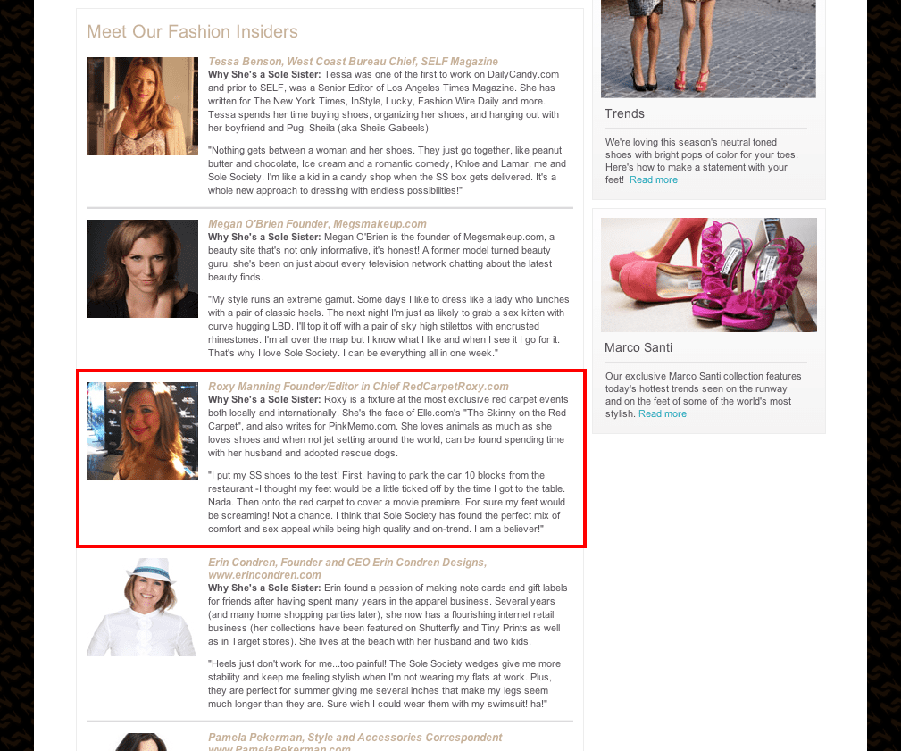 Red Carpet Roxy as a featured Fashion Insider for Sole Society.
