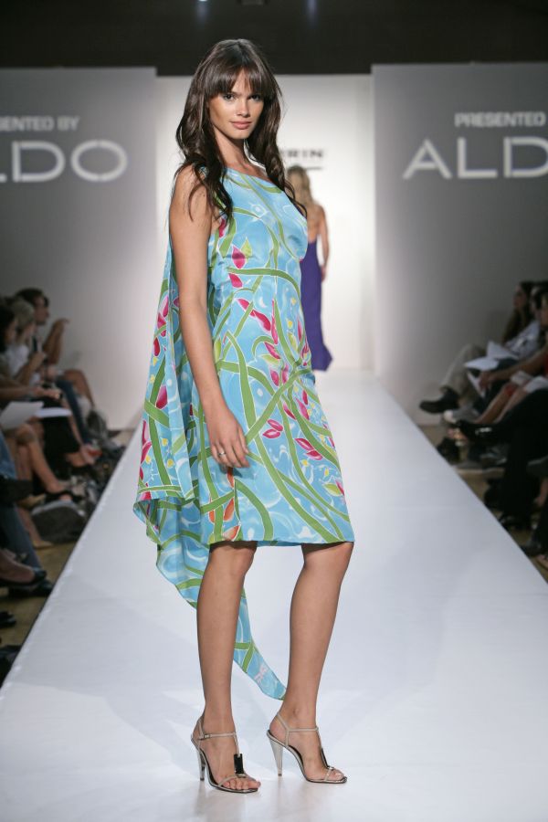 Fashion designer Abi Ferrin’s imagination and creativity are obvious in the special, one of a kind pieces that she produces and the Luz Delia dress is no different. I actually wore this piece to Abi’s “Women of Purpose” event last night and got too many compliments to count on my ensemble. The silk is actually hand painted by a talented artist named Julie Cox Hamm, who meticulously and skillfully decorates the fabrics that Abi uses in many of her fashions. That along with the flowly cut of dress and the end of the cape tied around my left wrist made for the perfect summer party dress last night. It almost felt like I was on a tropical island vacation…….in Dallas!