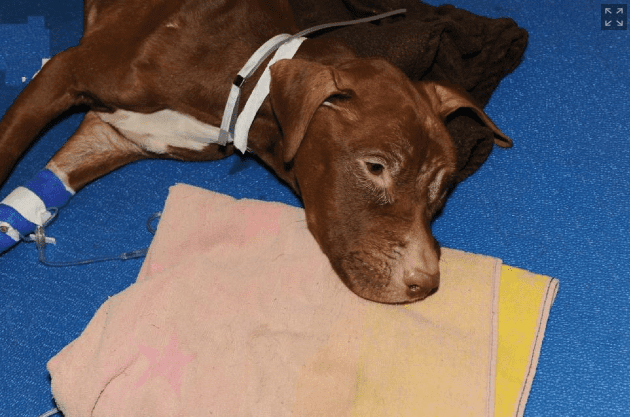 The cruelty that humans inflict on animals disgusts me, but this story is absolutely abhorrent. Some imbecile(s) in New York starved a precious pit bull pup, then stuffed him in a suitcase and left him behind a housing project in the Bronx. Tossed out like a piece of garbage. Luckily, a passerby alerted the police to the 3 year old dog, and he was picked up and transported to the ASPCA for care. He is being given life-saving treatments because he is in such bad condition and was deprived of food and water for an extended period of time before he was discovered.