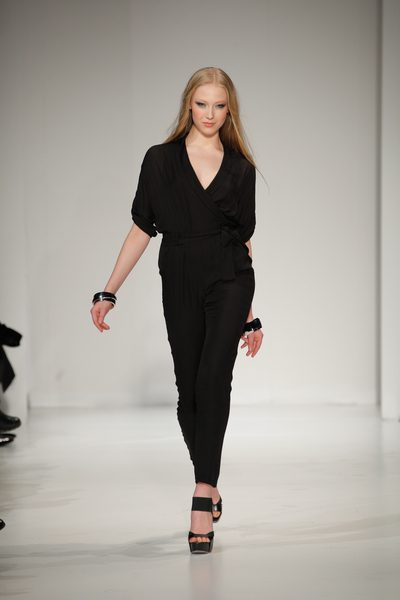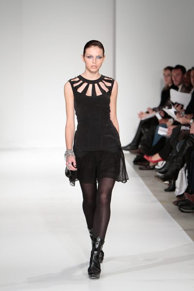 The next show of the day was Walter, who’s collection really reflected a rock n roll cool aesthetic mixed with femme touches. Think leathers bustiers, cutouts on the necklines of dresses, and draped blouses under vests. At the Walter show, there was “Real Housewives” galore as some of the casts of New York (Jill Zarin and Alex McCord) and New Jersey (The Manzo sisters-Dina and Caroline) were all in attendance.