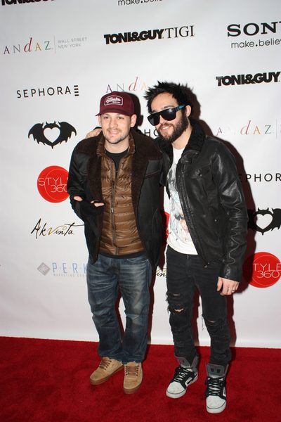 Joel Madden and Pete Wentz arriving at the Clandestine Industries STYLE360 after party at the Andaz Wall Street photo: Runway Resource