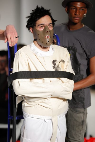 Pete Wentz as Hannibal Lector at the end of his Clandestine Industries fashion show at STYLE360 photo: Runway Resource