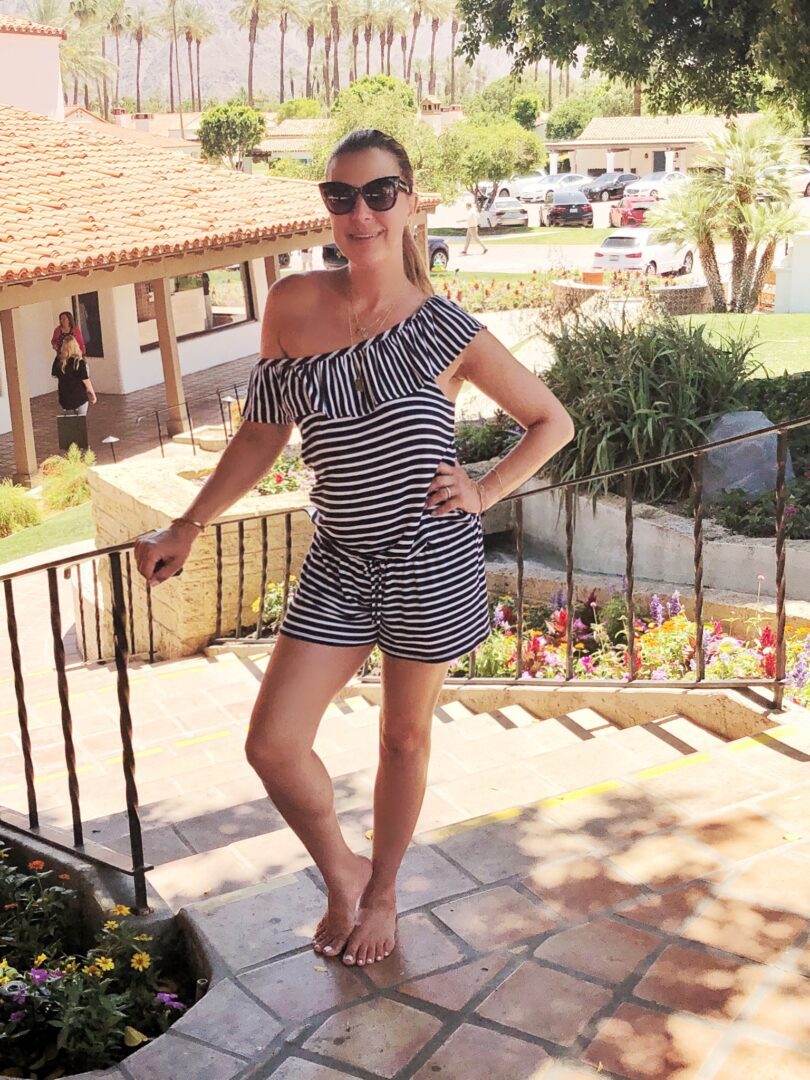 Do you have one of those pieces in your closet that is fast becoming a fashion staple? Well this romper is already one of my summer go-to looks. It’s cute, fun, easy, and travels really well (i.e. no wrinkles!) I took it to the desert this past weekend at the La Quinta Resort and lived in it. It’s great as a swimsuit cover up, out for a beachy lunch, or even to run errands all day. And I like that you can wear it off-the-shoulder, asymmetrical, or sleeveless. Very versatile and playful. Do you have a favorite summer piece? Shopping link below!