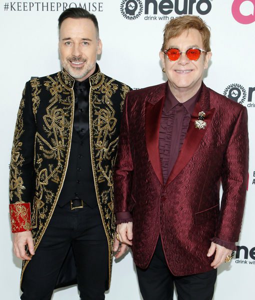 Elton and his hubby, David Furnish, arrived to the carpet wearing complementing brocade jackets before they hit the soiree. Earlier in the day, the couple marked the day with their sons Zachary (6) and Elijah (4), by reading a birthday card and having a chocolate bday cake.