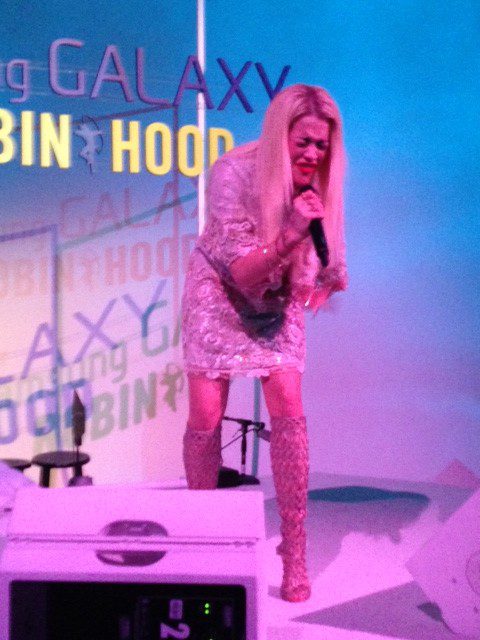 Admission: Last night was my first time to see “It Girl” Rita Ora perform live at Bob & Harvey Weinstein/Robin Hood Sandy Relief Holiday Bash sponsored by Samsung at Smashbox Studios. And I can tell you that it won’t be my last! That girl has got some serious pipes! She actually gave Mariah Carey a run for her money when Rita belted out “All I Want for Christmas” to the adoring audience. Decked in a cream-colored, vintage-inspired lace dress, as well as woven knee-high boots, she also performed another crowd-pleasing tune called “Party and Bullshit.” Both were acoustic and amazing.